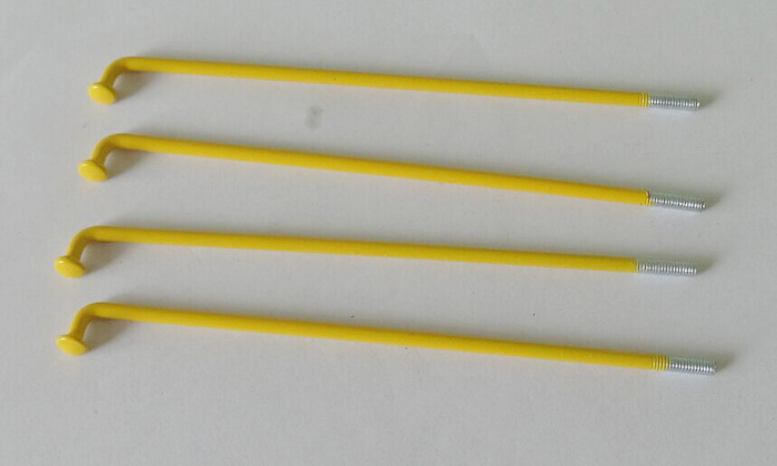 摩托車輻條,尺寸:120-230(mm),型號:C90。主要規格有 8G、9G、10G、11G、12G、13G、14G、15G長度為45mm-308mm,條母有普通型、銑槽、加長型銑槽及加長型銅條母。主要用于連接摩托車外輪和輪轂。摩托車輻條一端有個90度彎角穿過車抽盤的小孔,另一端有輻條帽穿過輪轂的輻條孔。通過調節輻條的松緊來調整摩托車車輪轉動是不是在同一個平面上。這樣,摩托車行駛會更穩。